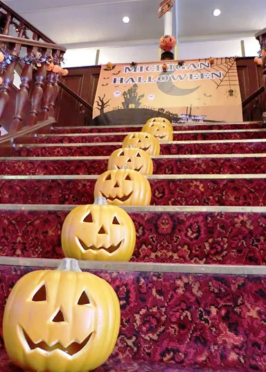 ミシガン船内の色々な場所に、お化けカボチャやランタンなどの装飾を実施します。