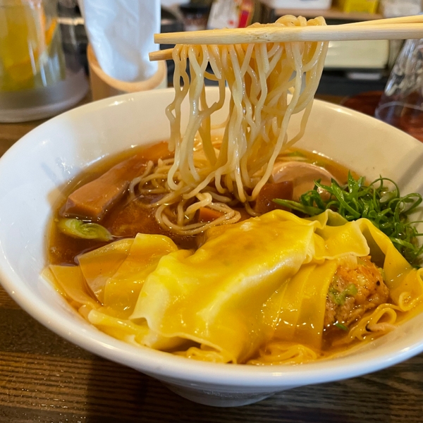 古白鶏とさば節を基本に干しエビなどで整えたスープは、蕎麦をオマージュした和の淡麗醤油ラーメン。カツオ節はタレにしか使用していないというサバ命なスープで、店主の大好きなさば節とさばの煮干しの香りが店内に充満しております。