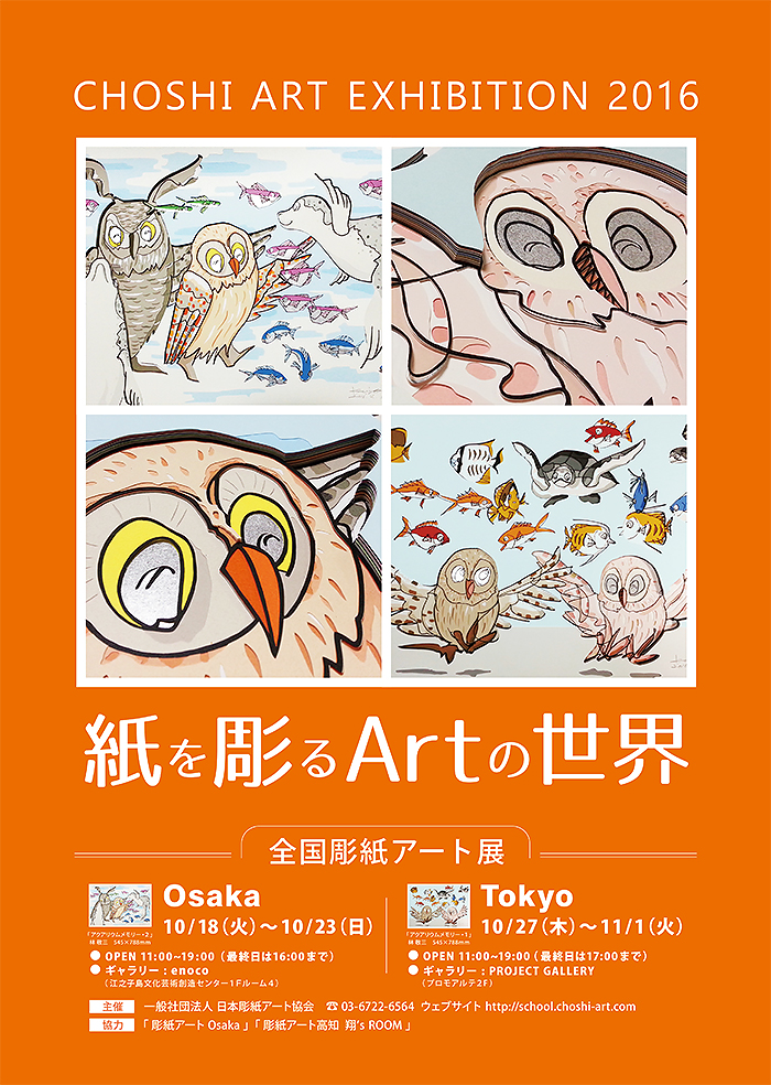 2016年9月7日 11:00一般社団法人 日本彫紙アート協会(所在地:東京都港区、代表理事:三尾 洋介)が2016年10月18日(火)~23日(日)の6日間に大阪のenoco 江之子島文化芸術創造センター1Fルーム4、2016年10月27日(木)~11月1日(火)の6日間に東京(表参道)のPROJECT GALLERY(プロジェクトギャラリー)にて『全国 彫紙アート展 2016』を開催します。
