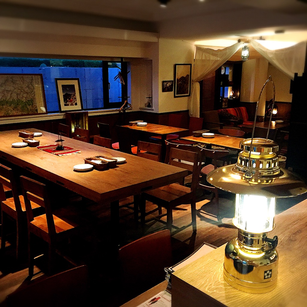 店内奥のタープで仕切られた空間は、まるでグランピングをしているような個室となっています。ゆったりしたソファー席とオーブンやランタンといったキャンプ用品に囲まれた空間は、早くも予約必須の人気席となっています。