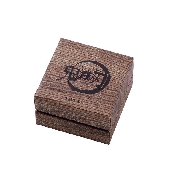 片方は側面に羽織の柄を取り込み、イメージカラーストーンをセットした一粒タイプ。もう一方は鬼殺隊の隊服ボタンを取り込んだデザインです。