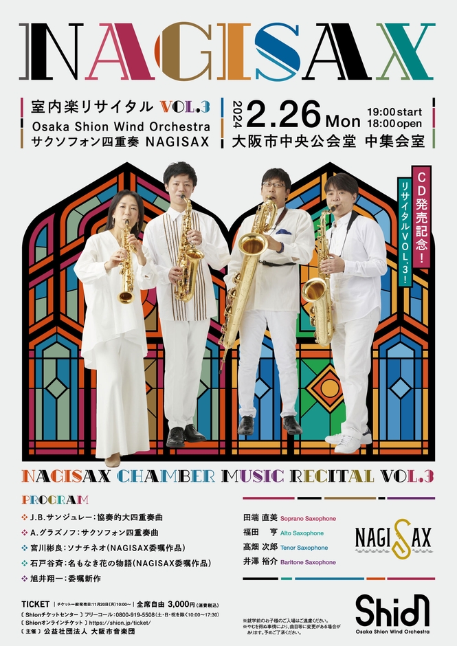 また、CD発売を記念し、2024年2月26日(月)に「NAGISAX 室内楽リサイタル Vol.3 ~CD発売記念~」を開催いたします!