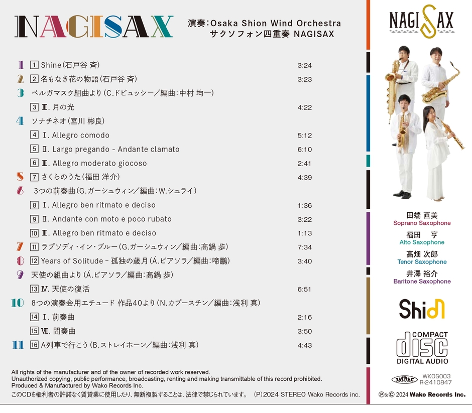 Osaka Shion Wind Orchestra サクソフォン四重奏 NAGISAXが初となるCDを販売いたします!
