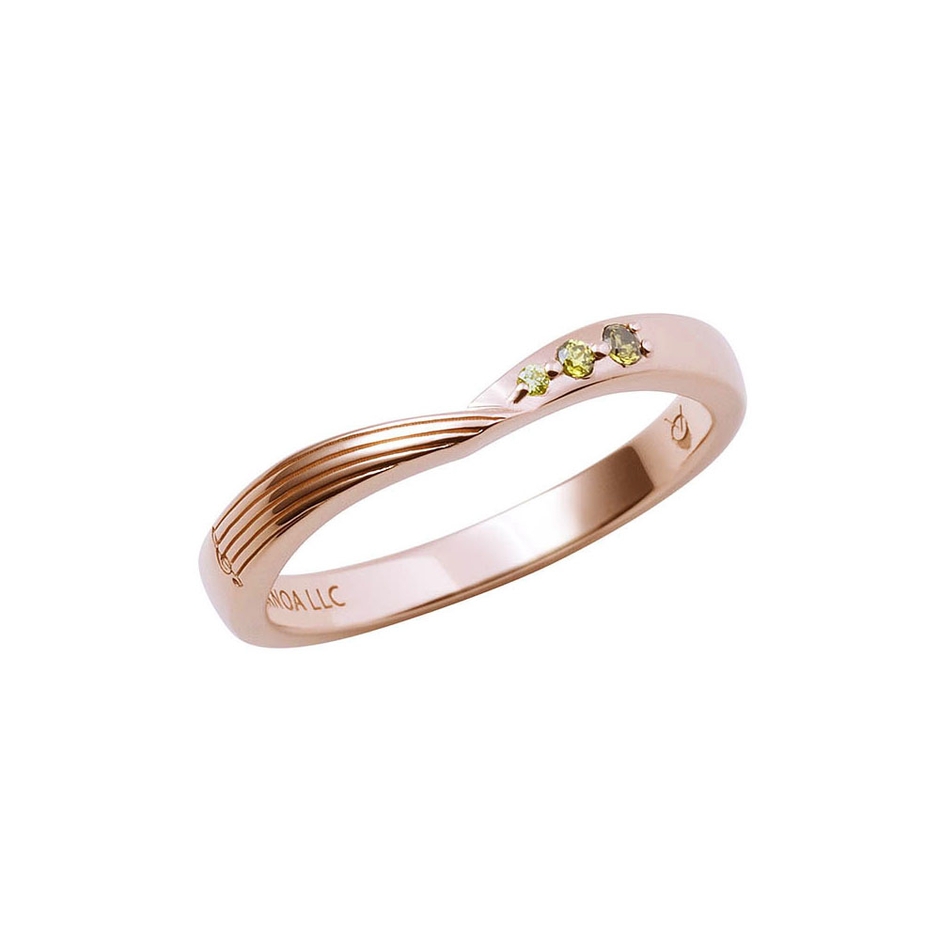 リングの表面には五線譜を取り込み、イメージカラーストーンをセット。
