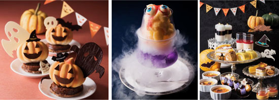 ハロウィンフェア不気味な笑顔が特徴の“おばけケーキ”やユニークかつ妖艶な雰囲気を醸し出すカクテルなど、見た目に徹底的にこだわりました。ビュッフェのスイーツコーナーでは、色とりどりのハロウィンにちなんだスイーツも登場。パティシエ・バーテンダーの遊び心溢れるキュートなスイーツ・カクテルをこの機会にぜひお楽しみください。
