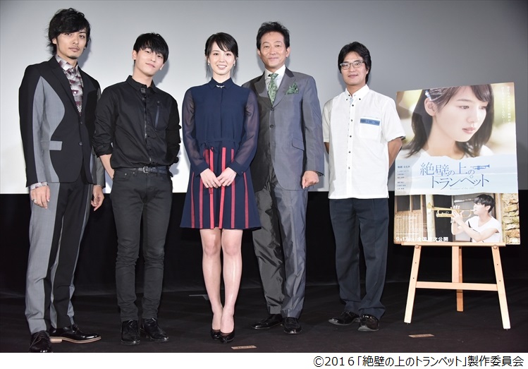 2016年9月20日 16:15沖縄・石垣島の美しい景色を背景に命を見つめる、日韓合作映画『絶壁の上のトランペット』が9月17日に公開初日を迎え、東京・シネマート新宿で主演の桜庭ななみ、共演のL.Joe(TEENTOP)、久保田悠来、辰巳琢郎、そしてハン・サンヒ監督が舞台挨拶を行いました。