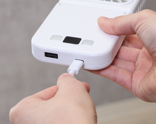 モバイルバッテリー機能は最大3000mAhの容量を備えており、スマホの充電にも対応。バッテリー残量はLEDディスプレイでひと目で確認できます。※ファン使用中は充電機能をご利用いただけません。