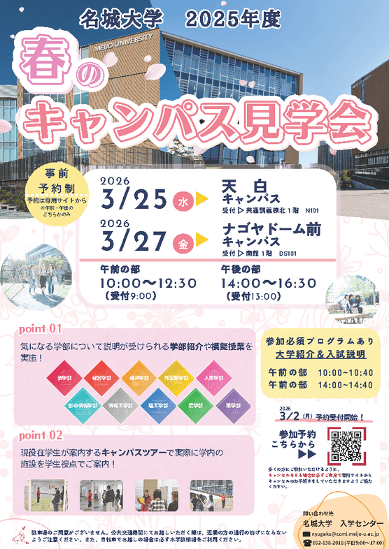 【名城大学】<新高校2・3年生対象>春のキャンパス見学会開催!