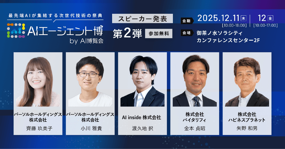 【AIエージェント博】第2弾スピーカー5名を発表!「創造AI」から「現場の業務変革」まで。AIエージェントと描く、未来の働き方