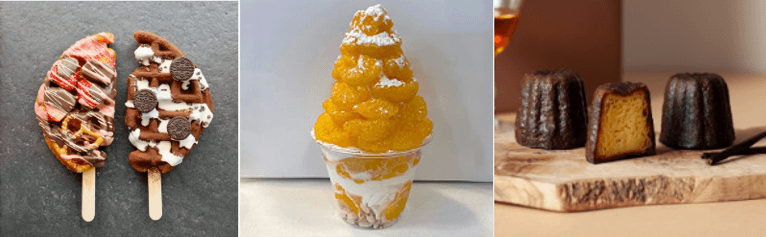 また、クロワッサンで作るワッフル「クロッフル」(Wafla)をはじめ、みかんだらけのソフトクリーム「みかんボンボン」(くりーむ堂)、パティシエの世界大会日本代表が手がける、本格派カヌレの「至福のカヌレ(カヌレとアイス)など、テレビで紹介された話題のスイーツを味わうことができます。