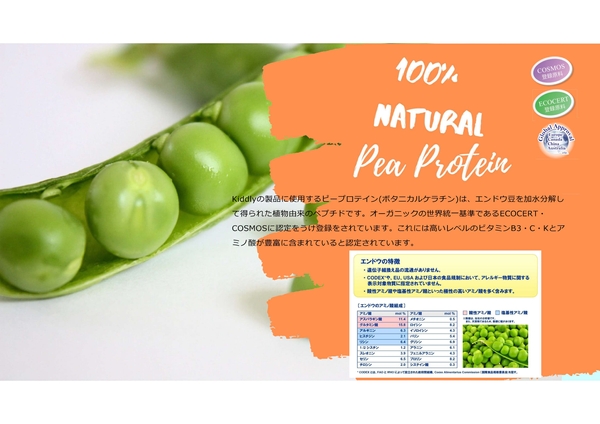 COSMOS・ECOCERTで認定された、えんどう豆から抽出したピープロテイン