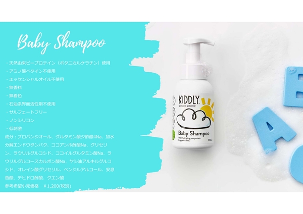 ニュージランドのスーパーで可愛いボトルデザインが気になり偶然手に取ったのがKiddly natural baby shampooでした。パッケージには、日本では見かけない天然成分由来・ピープロテイン使用とありクリニックの患者様でもある知人のお子さんの顔がうかびお土産に3本セットで購入し帰国後にプレゼントしました。数日後、知人の奥様からお礼のお言葉とともに使用感についての感想をいただきました。
