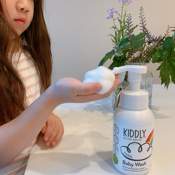 Kiddlyの全製品は特別に開発されたリッチな泡を生み出すボトルに入っています。ワンプッシュで濃厚なたくさんの泡を作り出すフォーミングボトルは他には見ないものです。これにより、お子様自身で洗う事を容易にしてくれるだけでなく、均一な泡は流し残りも防いでくれます。