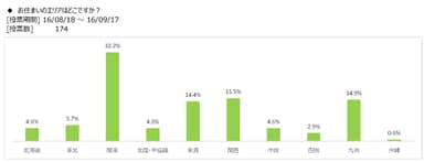 次にユーザーの住んでいるエリアでは、関東が1番多く、32.2%を記録しました。次点は関西(15.5%)となり、以下、九州(14.9%)、東海(14.4%)と続き、やはり人口の多い首都圏が中心となりました。