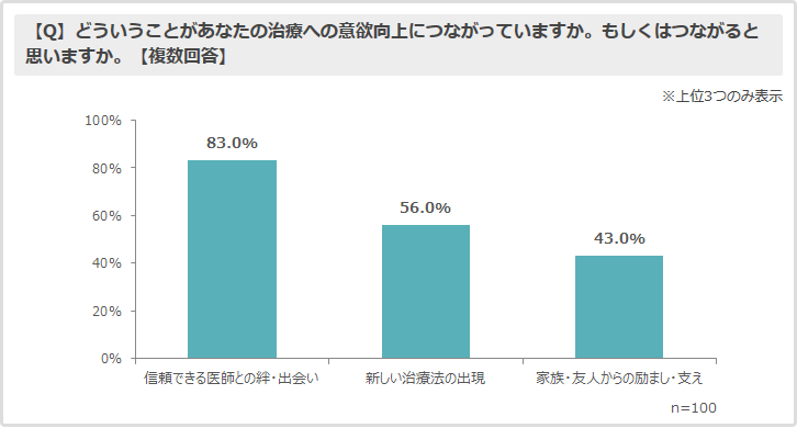◆患者の治療意欲向上の源、最も多かったのは「信頼できる医師との絆・出会い」