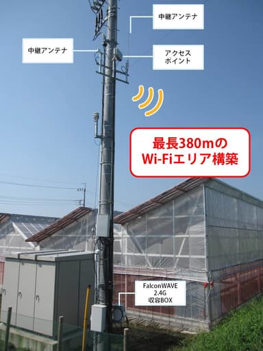 長距離無線LANシステム『FalconWAVE(R)』で 農園内を広域無線ネットワーク化 農業ICTで各種データや映像を集約する他、 農業指導でWi-Fi活用
