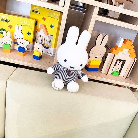 EDWINコラボのミッフィーぬいぐるみがこちら!ストライプのお洋服がバッチリ決まってますね♪