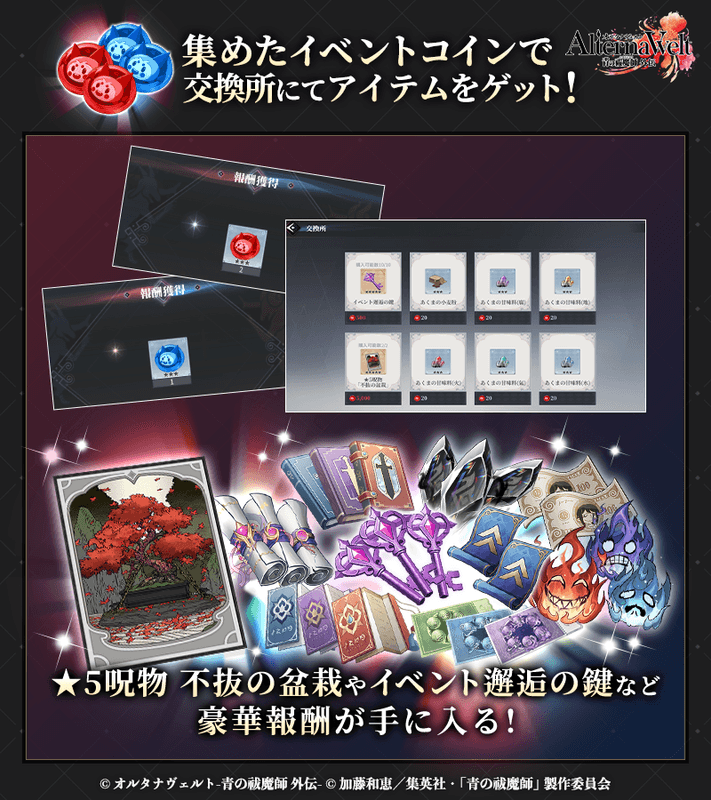 各種ゲーム内アイテムを獲得できる交換所などをお楽しみいただけます。