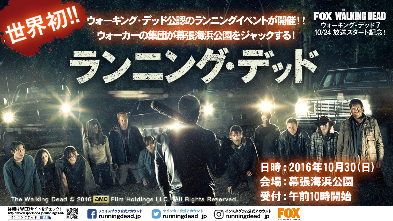 FOXではその最新シーズンである『ウォーキング・デッド』シーズン7を、アメリカでの放送からわずか11時間後となる10月24日(月)よる9時より日本最速放送いたします。本作の放送開始を記念して開催されるこのランニング・デッドは、参加者がゾンビの仮装をして2.5kmのファンランを楽しむファンランイベントです。FOXはイベントを通して、10月のハロウィーン・シーズンを盛り上げて参ります。