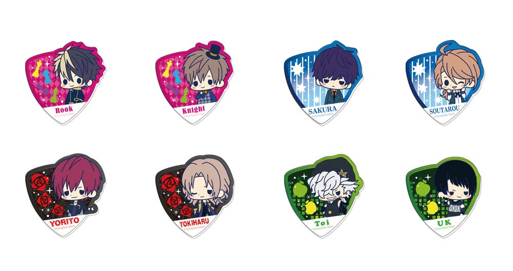 [画像]クリアブローチコレクション DYNAMICCHORD Track.1バンドをテーマにした大人気シリーズ『DYNAMIC CHORD』よりバンドマン達の可愛いクリアブローチが発売決定!第1弾のキャラクターラインナップは[Rook、Knight、檜山 朔良、榛名 宗太郎、YORITO、TOKIHARU、Toi、UK]の全8種。第2弾は[King、Bishop、珠洲乃 千哉、結崎 芹、YUU、SHINOMUNE、NaL、Kuro]の全8種がラインナップ。合わせて「[reve parfait]」、「Liar-S」、「KYOHSO」、「apple-polisher」4つのグループを揃えることができます。