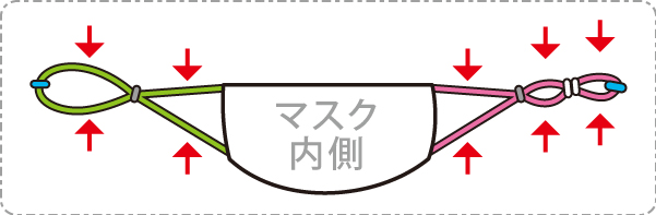 (5) 矢印部分のヒモを引っ張ることで、マスクの緩みを自分好みに微調整できます。