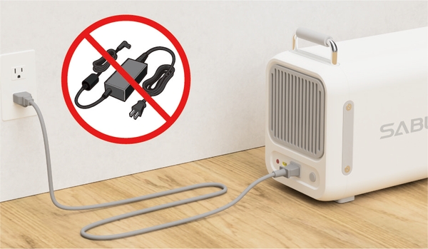 AC / DC変換アダプターを必要とせず、ACケーブル1本で充電できる為、余計な場所を取らず、またインテリアなどの景観を損ないません。