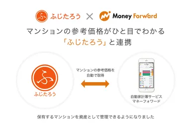 この度の連携では、当社が『ふじたろう』の人工知能・ビッグデータ技術によって算出したマンション参考価格データを、株式会社マネーフォワードが展開する自動家計簿・資産管理サービス『マネーフォワード』に提供いたします。