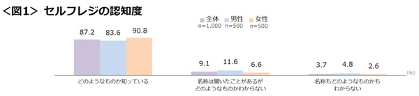 ●セルフレジについて【どのようなものか知っている】回答した人は全体で約9割となり高い結果に。性別で見ると、男性よりも女性の認知度が高いことがわかった。<図1>