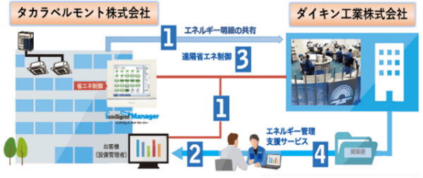 タカラベルモントの大規模ショールーム「TB-SQUARE osaka」(大阪市中央区)において、エネルギー使用量増加の原因を分析し、お客様とともに省エネ改善に取り組んだ事例です。1日の来客者数の変化に着目し、CO2センサーと全熱交換器の連動による換気制御の最適化を行いました。また高機能コントローラを活用した空調機の運用改善とデマンド制御、オンライン監視データによる継続的な運用改善の提案など、複数の省エネ施策を組み合わせた結果、快適性を維持しながら空調消費電力量の31.6%削減と、ピーク電力の23.7%抑制を実現しました。管理工数の低減により、空調管理に携わる従業員の作業負担も軽減しています。