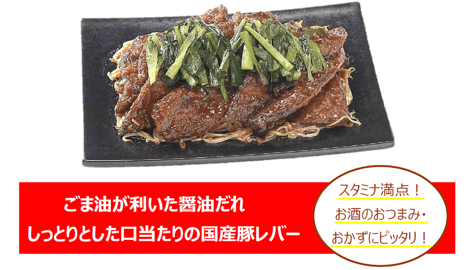 レバーのしっとりとした口当たりと、ニラ・もやしのシャキシャキとした食感の両方をお楽しみいただけます。