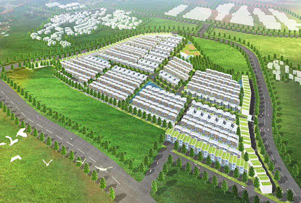 【完成イメージ】本プロジェクトは、ジャカルタ中心部から南西約25kmのジャカルタ郊外で、近年はイオンモール等の大型商業施設も進出するなど、BSD社が約5,950haの広大な土地を生かして大規模開発を進めているBumi Serpong Damai地区(※)の一角、約19haの敷地で、戸建て住宅及び商業施設(店舗付き住宅)計約1,000戸を供給しようとするものです。