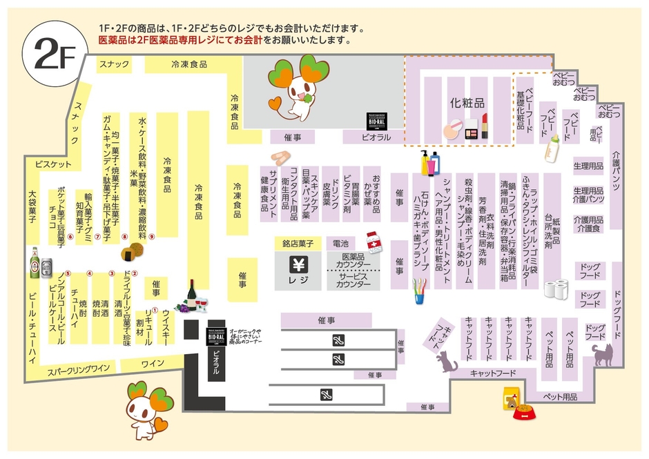 2階には「ドラッグコーナー」を新設。医薬品もご購入いただけるようになりました。