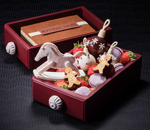 (1)すべてチョコレートで仕立てられ食べられる引き出し型ボックス。