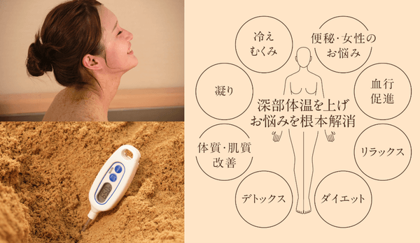 電気やガスを使わない、自然の発酵熱だけで体を温める温浴法です。ヒノキのおがくずや米ぬかに酵素を入れ、微生物が発酵する際の熱だけで、浴槽は60度-70度まで達します。体の深部まで届く発酵熱で、腸まで温めることができ、食事では摂ることに限界がある酵素を、経皮からダイレクトに吸収できます。たった15分でマラソン2時間分の発汗が期待でき、デトックスや様々な女性の健康課題への効果が期待ができます。