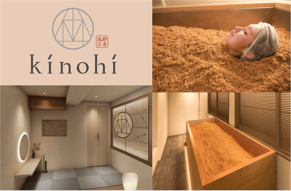 「kinohi」は、「ほっと一息つく空間で女性の心身の不調を解消する」をコンセプトに、至福のひとときを提供するブランドです。厳選された国産のひのきを使用した酵素風呂で、まるでひのきの香りが漂うひだまりの下にいるような「至福のひととき」を過ごしてもらいたい、という想いが「kinohi(きのひ)」の名前の由来です。