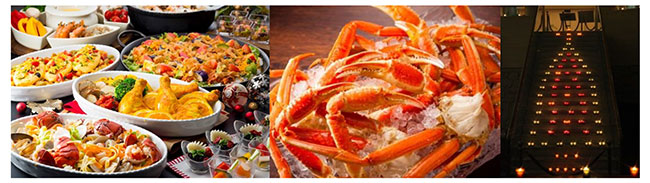 海の幸をふんだんに使ったシーフード料理や大人気のローストビーフ、旨みの詰まったズワイガニなどクリスマスだけのスペシャルブッフェをお楽しみください。