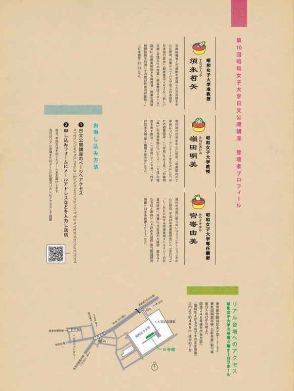 - 対面:昭和女子大学 8号館6階 オーロラホール(※定員に達したため締め切りました)
