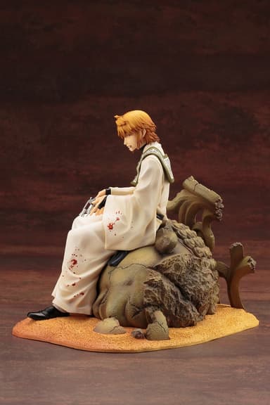 原作者:峰倉かずや先生描き下ろしのイラストを基に立体化!イラストの繊細な色使いや、三蔵らしくにらみをきかせて銃を構える姿を見事に表現しました。三蔵本体は勿論、腰掛けている仏像や特徴的な血しぶき等作品の雰囲気を作っている小物に至るまで忠実に再現しています。さらに、《ブックタイプ台紙付峰倉先生描き下ろしイラスト》が付属したDX版も同時発売が決定。