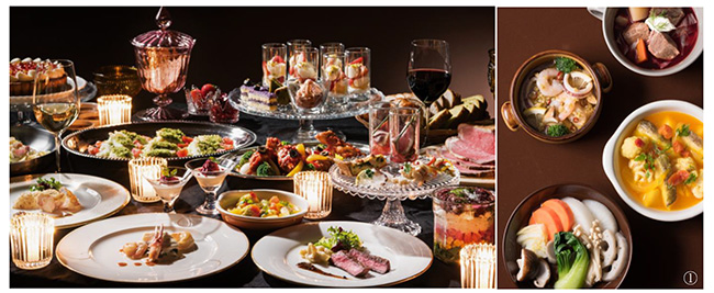 右:写真1“フルコースを仕立てるように楽しむビュッフェ”のコンセプトはそのままに、これからの季節へ向け、煮込み料理やスープ料理など身も心も温まるメニューにフォーカスした新作メニューをご用意。蟹爪、真鯛、蕪など冬の食材を取り入れた多彩なお料理も登場いたします。