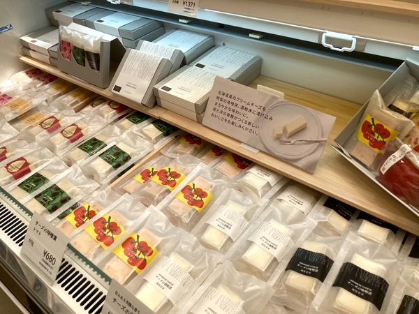 北海道産のクリームチーズを特製の味噌床、酒粕床に漬け込んだ<銀座のチーズ>シリーズは、エキュート品川先行販売の「チーズの味噌漬-いちじく-」を含めた、7種類を販売。定番のチーズの味噌漬、酒粕漬の他に、いぶりがっこ入り、奈良漬入りなど様々な味わいを楽しめます。