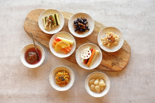 「カレーピクルス」や「いちじくのコンポート」、伝統製法の「みりんらっきょう」など、彩りと味わいのバラエティに富んだお漬物を、食べ切りのミニパック入りで。