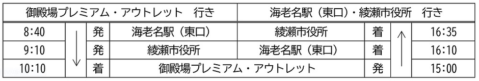 神奈川県央地域からの新たな高速乗合バス「海老名駅/綾瀬市役所~御殿場プレミアム・アウトレット」線を、どうぞご利用ください。