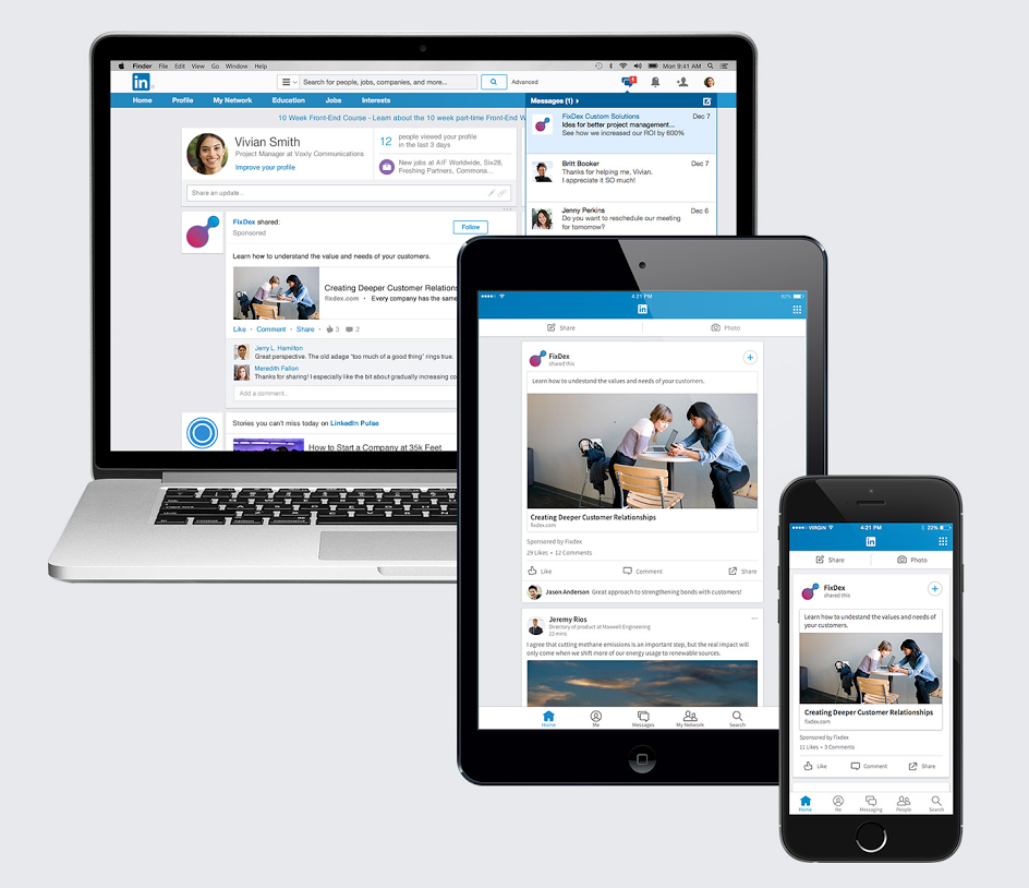 LinkedInのプロフィール内にあるインボックスに直接広告を配信できるメニューです。ユーザーの登録情報に応じて、地域、職種、業界などのターゲティングを通じて、受信者設定を行う事が可能ですので適切なユーザーにリーチすることができます。