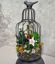六甲オルゴールミュージアム専属ガーデナーの指導によるアレンジメントは、六甲山で育った多肉植物「センぺルビブム」にあわせて、セダムやハオルシアなどの多肉植物を使用して寄せ植えを行います。さらにドライフラワーやハスの実、カラマツの実などを加えてクリスマス風のアレンジメントをお楽しみいただきます。アレンジメントの後は、シュトラウス・カフェ特製「六甲山ミルクロール クリスマスデコレーション」を楽しみながら、優雅なひとときをお過ごしいただけます。