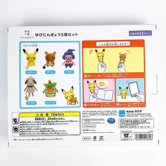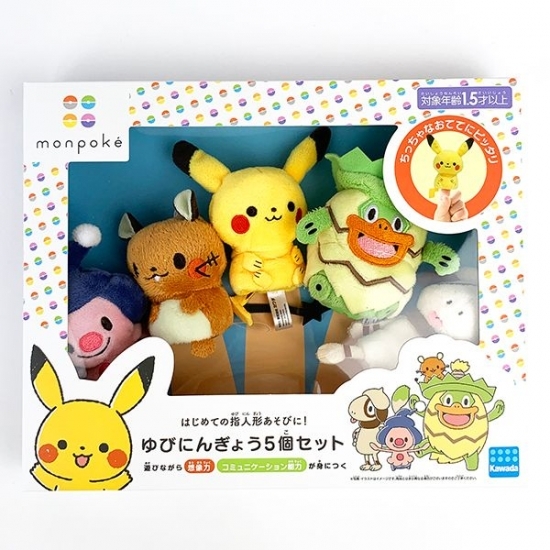 ピカチュウ・デデンネ・マネネ・ドーブル・ルンパッパの5体セットの指人形。お子さんの指にもピッタリなサイズ感で、とってもかわいいんです。