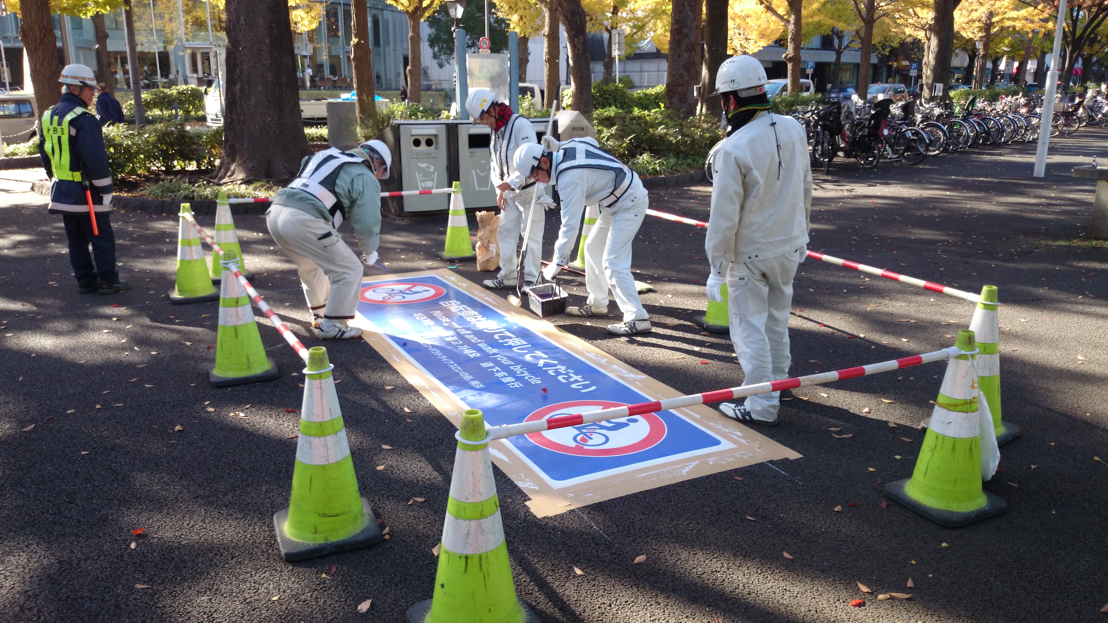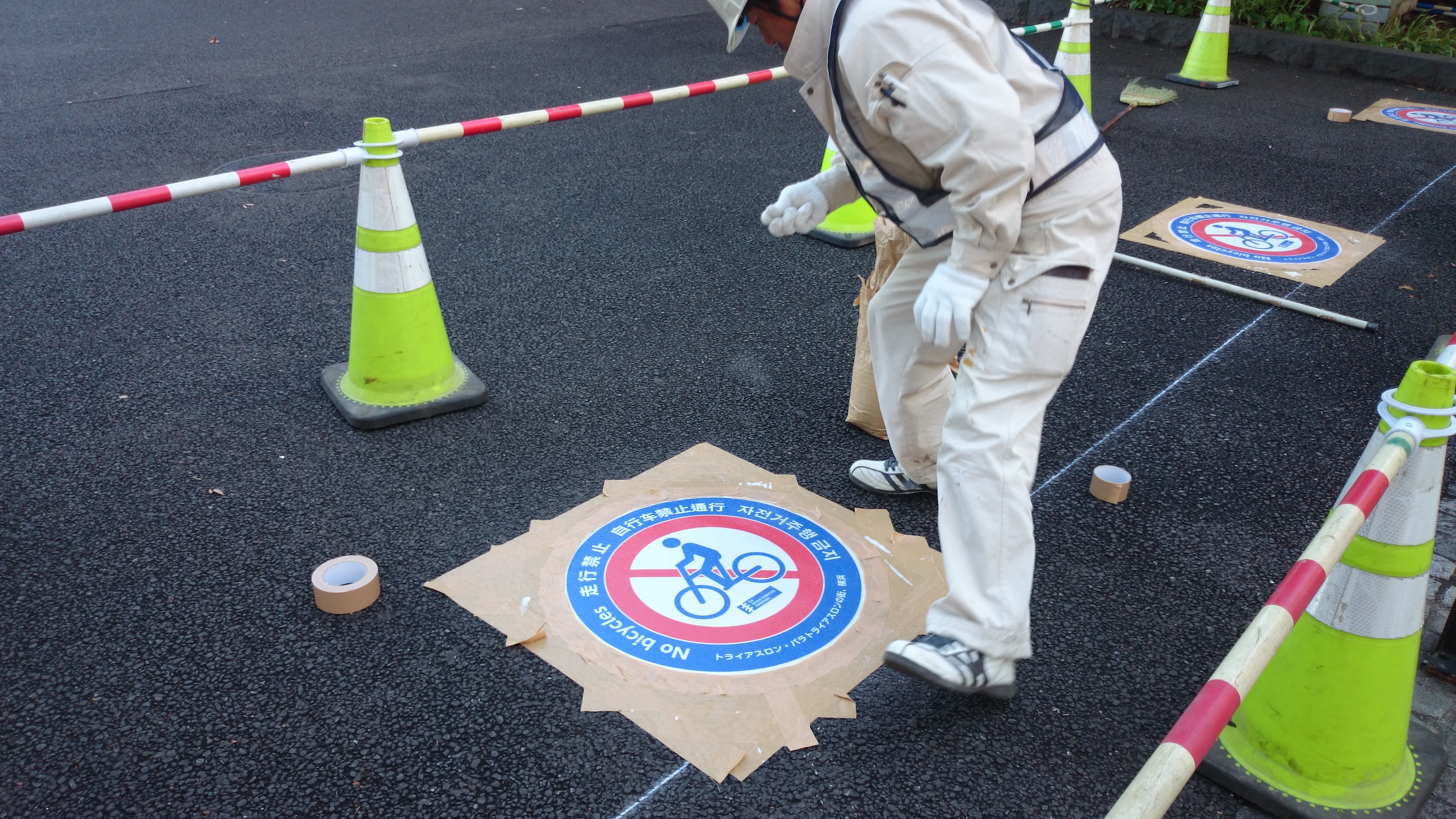 今回横浜市は、2017年5月に開催される世界トライアスロンシリーズ横浜大会に向け、開催場所となる山下公園における自転車利用ルールの周知・普及と共に、「トライアスロン・パラトライアスロンの街 横浜」の認知向上を目的に、三井化学産資の「シリカルアート工法」を用いた路面サインを設置いたしました。