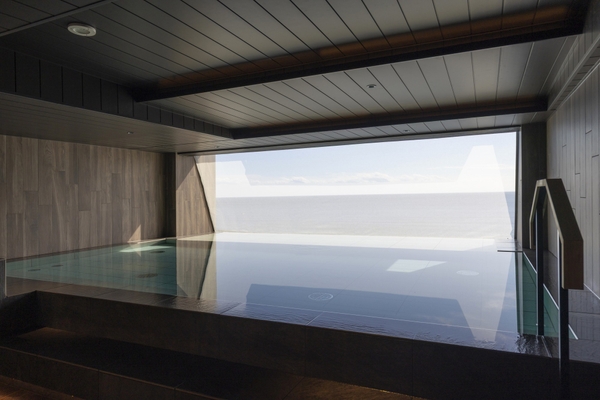 インフィニティ温泉からは、日本の夕陽百選に選ばれた志摩市浜島町の黄金色に染まる海の絶景をお楽しみいただけます。湯船に体を沈めると、まるで雄大な太平洋にそのままとけ込んでいくかのような、一体感を味わうことができます。落ち着きのある空間で、海を眺めながらゆったりと湯あみをご堪能ください。