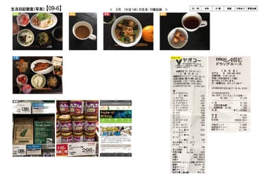 期間を定め、特定のモニターの生活を24時間スケールで捕捉する定性調査。モニター1人につき、7日分の筆記式調査シートと食卓やレシート等の写真で構成される。(調査データの情報には個人情報保護の加工が施される)