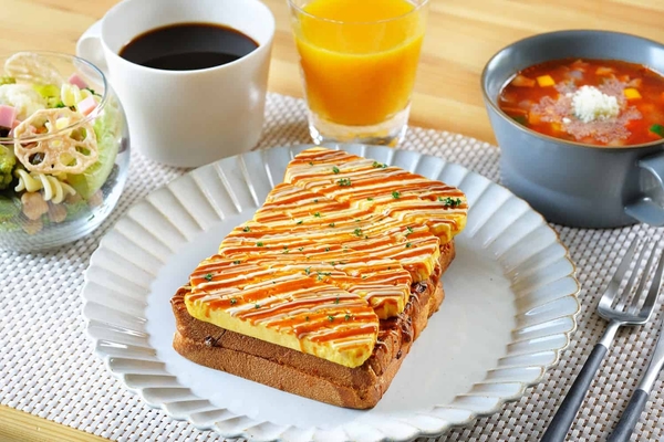 「クロックマダム」をアレンジし、目玉焼きの代わりに大阪らしく厚焼き玉子をのせた当ホテルオリジナルの朝食メニュー「クロックおかん」など全5種類から選べるモーニングセットを用意。朝からテンションがあがる朝食は、OMOカフェ&バル内はもちろん、ガーデンエリア「みやぐりん」でも食べられます。朝の爽やかな風を感じながら、優雅な朝食時間を楽しむことができます。