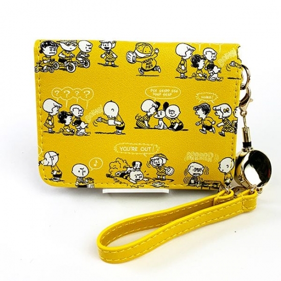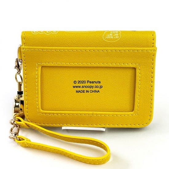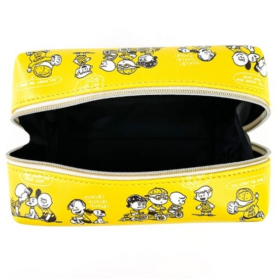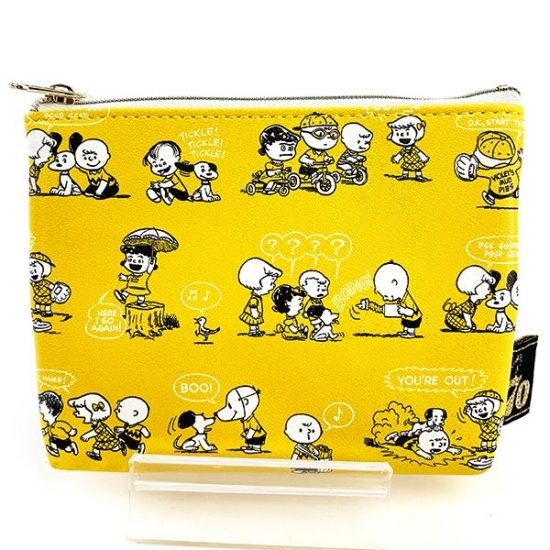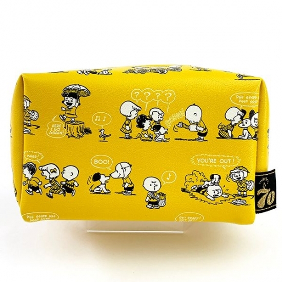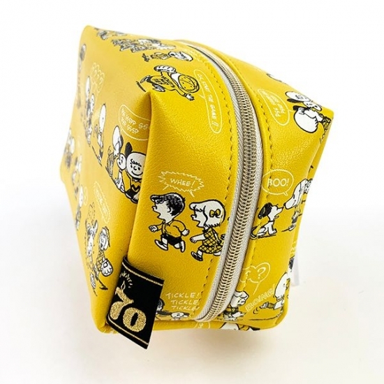 イエローの背景に、レトロなスヌーピーやチャーリーブラウンたちが大集合しているポーチです。